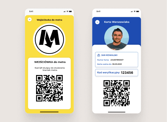 Ponieważ nie mogliśmy wpłynąć na modernizację infrastruktury miejskiej, np. wprowadzenie NFC w metrze, zaplanowaliśmy elastyczne rozwiązania. Wprowadziliśmy optymalizację kodów QR, aby były one sprawnie odczytywane przez istniejące czytniki, a także dodaliśmy widgety, dzięki którym kod QR jest szybko dostępny na ekranie głównym. Dla zapewnienia bezpieczeństwa aplikacja została zabezpieczona PIN-em. Aby uzyskać Kartę Warszawiaka, wystarczy zalogować się przez Profil Zaufany i, w niektórych przypadkach, potwierdzić meldunek, co umożliwia automatyczne pobranie danych o mieszkańcu z systemu miejskiego.
